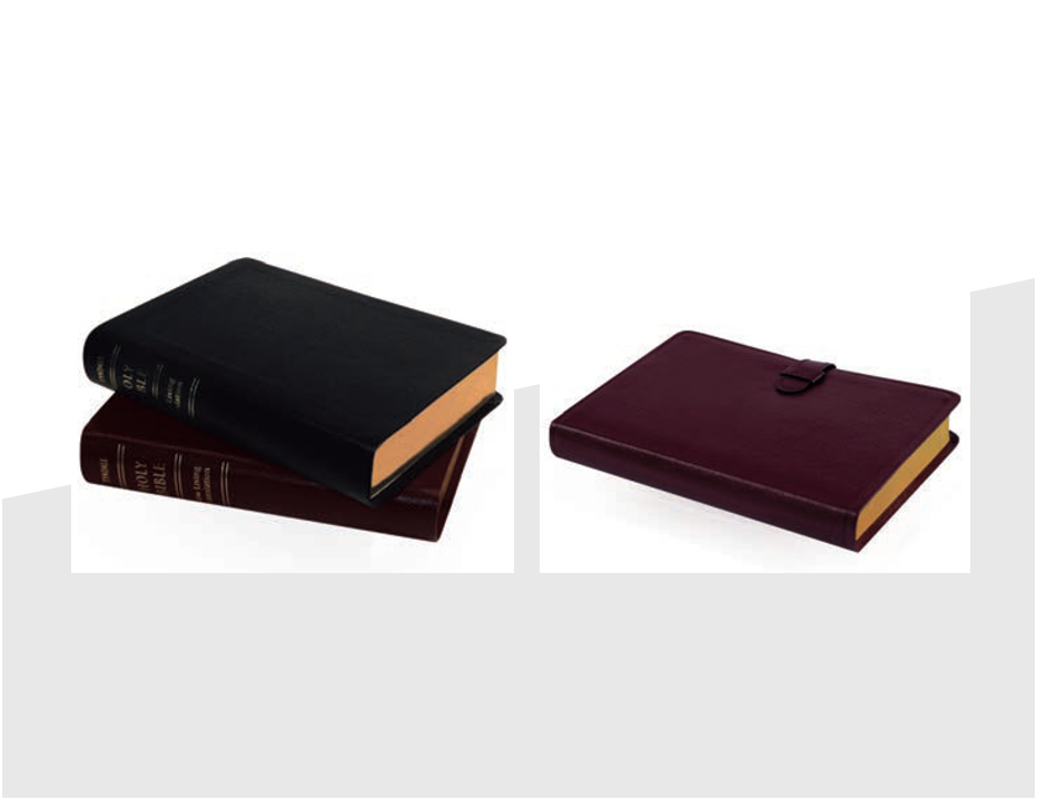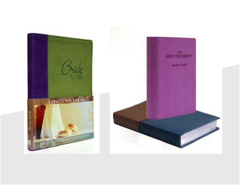We are capable of manufacturing an exquisite range of gilt-edged duotone Bibles with stitched or sealed edges. Material used is hi-quality PU in various colours Stitching in all styles is possible which gives covers the appearance desired by a customer The PU covers can be mounted on binders board to give the hard cover appearance or on a latex board to give the cover a flexible appearance. Covers can be foam padded or plain. This material accepts any type of hot stamping and blind embossing. Availability of the material in different colours and finishes enabling a wide range of designs to choose from